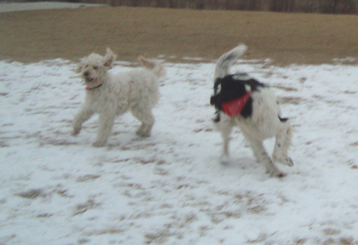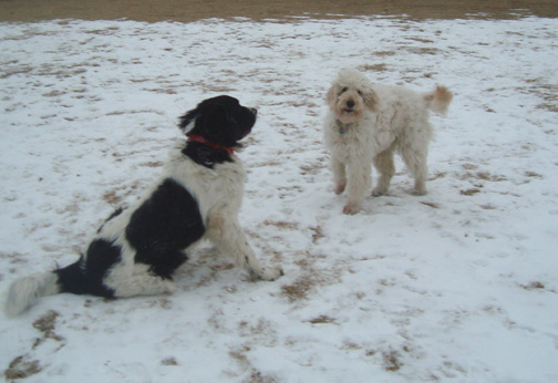 It was very cold this morning, but the dogs didn’t seem to notice or care. I took these shots before their other pals Finnie and Basil joined the crowd.