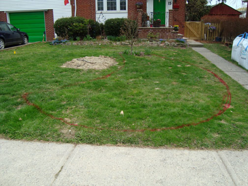 By the way, that patch in the front yard that looks like a grave was dug by the City during the winter. They replaced the water service on our street. The City runs the water into the yard and provides a shut-off. We then had the same contractor run the new service right into the house to replace the old pipes with bigger copper ones.