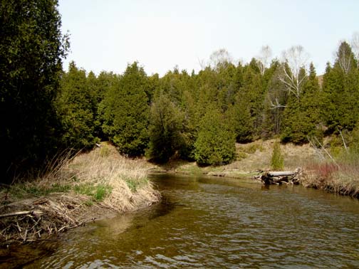 There are lots of rivers but this is the one I mean when I just say The River. Today was the opener of trout season and I worked an old favourite stretch I don’t fish much any more. It was lovely to reaquaint myself with this part of the river again. We just call it The Brook Trout water. There may be a reader or two out there who knows what I’m talking about.