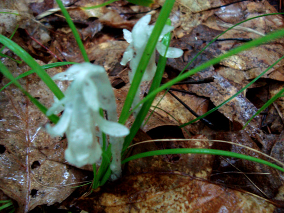 I’ve started to see Indian Pipe in the forest. This strange plant, also known as the Ghost Plant of the Corpse Plant, has no chlorophyll, the special sauce that makes plants green. These plants have a specific relationship with trees and fungus. Unlike plants with chlorophyll, Indian Pipe can’t make it’s own food. Instead it robs nutrients from mycelia, the thread-like body of a fungus. The fungus in turn has a special relationship with a tree. The fungus and the tree have a mycorrhizal relationship, which means that they help one another achieve nutrients. On the other hand, the Indian Pipe takes but does not give back. The Indian Pipe likes Russula and Lactarium mushrooms, both of which happen to be hosts for the lobster mushroom parasite, hypomyces lactoflorum. That tells me that when I see Indian Pipe, maybe I should be looking carefully for lobsters.