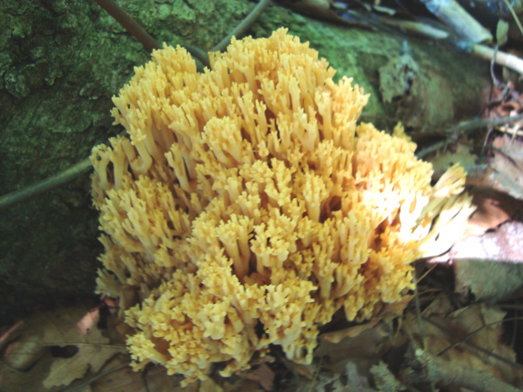 Today, I found quite a bit of coral fungi in the woods. I don’t know if all the stuff I found was the same species or different. Some was quite bright white, and other specimens were distinctly yellow like in the posted photo. I haven’t taken the time to gather a number of samples and closely study it. I know that some of the coral fungi are edible, although I’ve heard that some of it has a distinctly peppery taste. One day, I’ll bring a bunch home and start to build confidence in identifying the stuff.