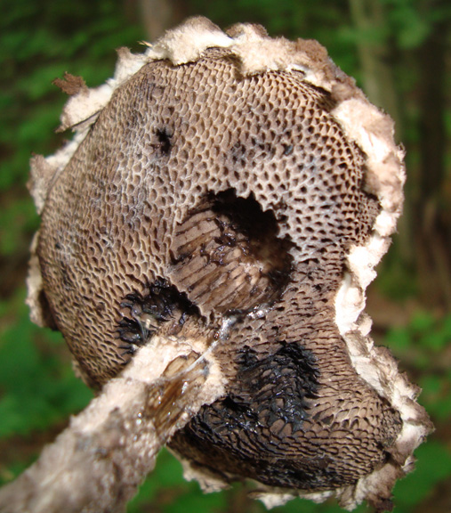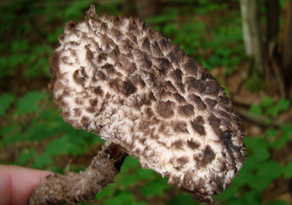 Today I found an Old Man of the Woods mushroom, or Strobilomyces strobilaceus. These boletes are apparently edible, but hardly appetizing. They’re covered in hairy scaly bits on top. They stain reddish then black. The one I saw was remarkably camouflaged. I almost didn’t see it. I wonder how many of these I’ve been close to without ever seeing them.