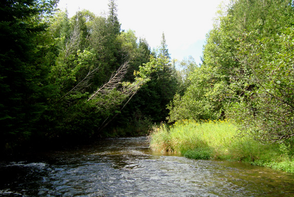 This year I’ve spent way more time in forests than in rivers, but today looked like a perfect day for some fly fishing. Off I went to The River. I just call it that. Everybody who needs to knows which one I mean. Around this time of year, a bug called an Isonychia bicolour (aka white-gloved howdy, aka slate drake, aka leadwing coachman) comes off the water. When I say that I mean the nymphal form of this interesting large mayfly swims into shallow water and tries to emerge onto rocks. Some other mayflies are burrowers or clingers as nymphs but the isonychia swims. It brings large trout into the shallows to feed, and this is the time of year when a fly fisherman is apt to catch a very large brown trout. The bugs usually make an appearance in late afternoon, but on drizzly days, they sometimes come off the water all day, and the trout happily feed on the emergers. That was the plan. I didn’t figure that by the time I got to the river the sun would come out.