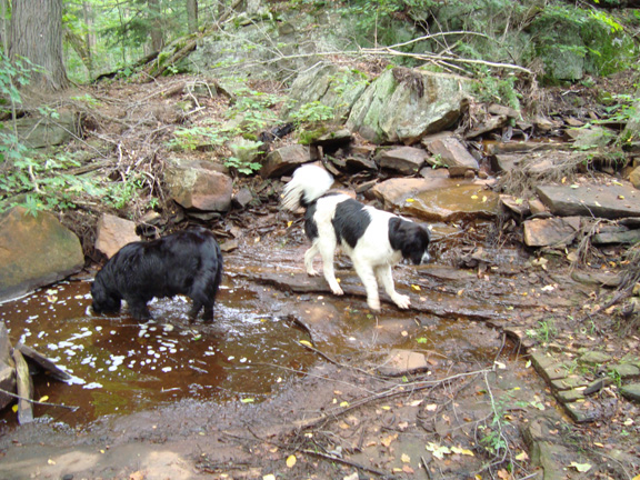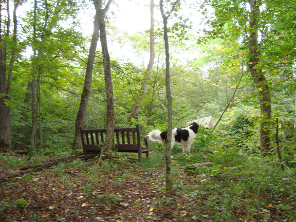 Here’s Memphis at a rest stop at an unusual rock formation in the forest.