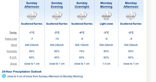UPDATE: It is now 11:00 PM Sunday night and I haven’t seen any snow yet. I demand a refund.