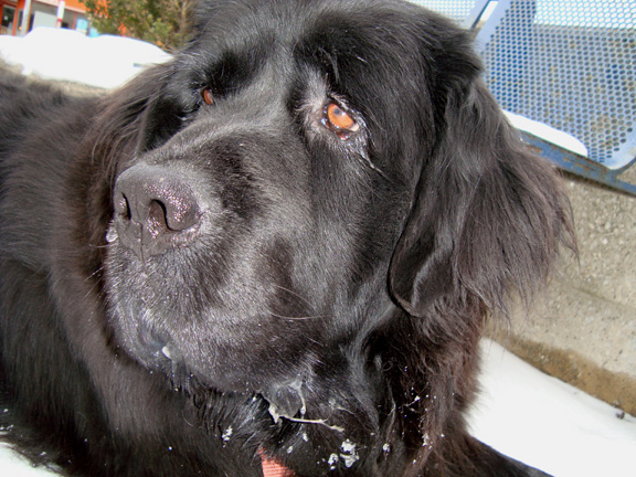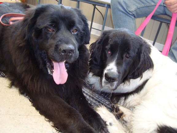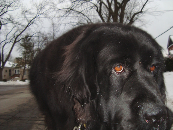 For those who haven’t met our dogs yet, Memphis is the Landseer and Ellie Mae is the black Newfoundland. We took them for a walk up to the vet’s today. The clinic is just up at Lakeshore and 30th St. a 15 minute walk. Ellie Mae has an ear infection for which the vet gave us some stuff to clean out the ears daily, and and a medication to deal with the problem. There may be an underlying allergy issue, since this has been a nagging problem that has resurfaced a few times, or perhaps was never fully resolved. First we’ll see how she does with the cleanings and the medication, and reassess in a couple weeks. If the problem persists, we may have to restrict her diet and change her protein source.