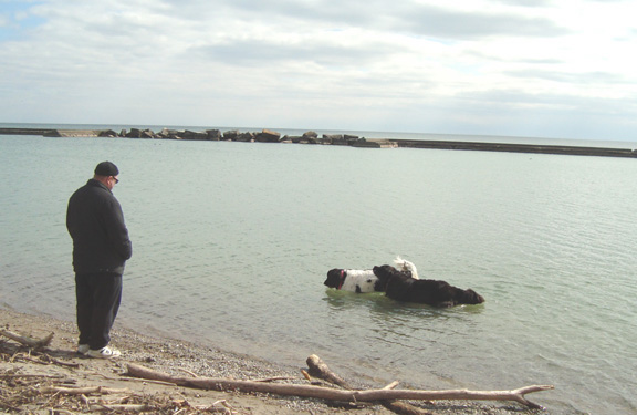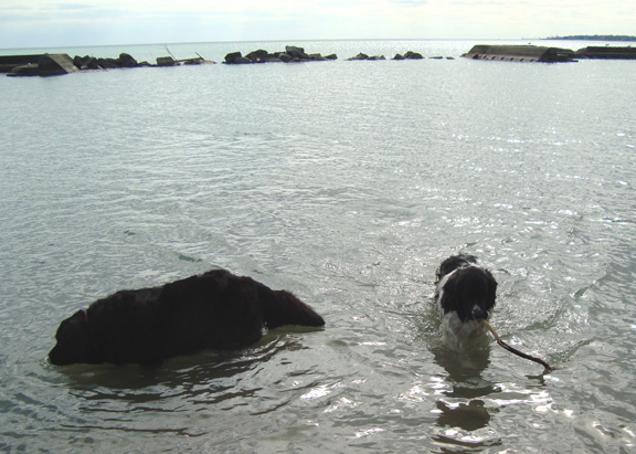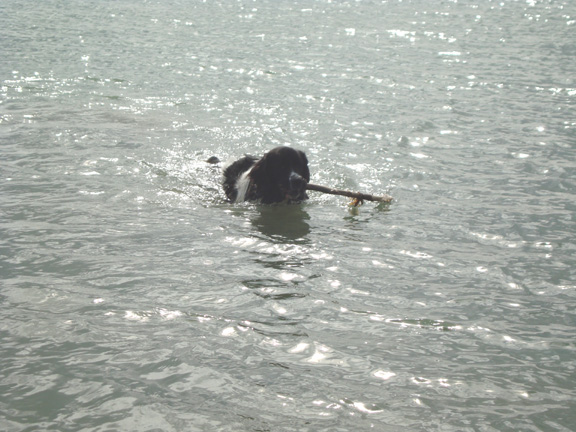 Today was a fabulous example of an early spring afternoon at its best. We went for a long walk with the girls, who used the opportunity to enjoy their first swim of 2011.