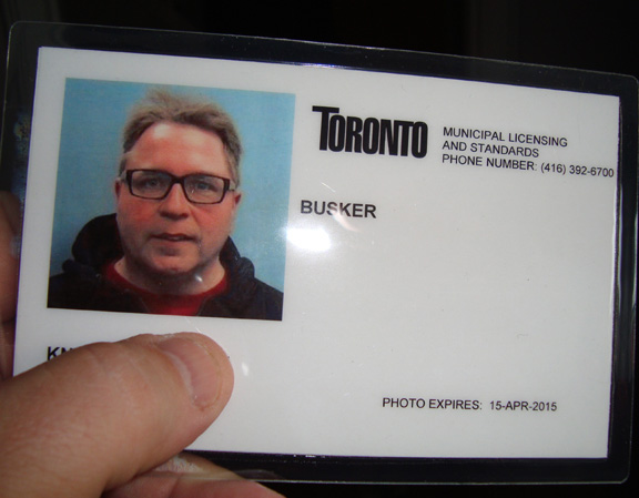 Here’s how it works. First you stand in line at intake. This line-up is for any kind of license so buskers have to line up with folks who want a patio license for their restaurant and so on. At intake, you’re asked for two pieces of government issues ID. Then you’re asked what it is you’re after. A busking permit, I say. OK, go sit down and we’ll call you. A short while later my name is called over a loudspeaker. Mister Anchovy to desk 6 please. At desk 6, I’m asked for two pieces of government issued ID. I ask if the same two pieces I showed that last person were OK or did she require two different pieces. She gave me that please don’t be a smart-ass look I know so well, and I forked over the ID. She asked me what kind of busking I planned to do. Musical performance. What instrument. Squeezebox. Huh? Squeezebox. Accordion, you know. Oh, accordion. Do you use an amplifier? I swear on my honour I will not amplify. Do you just play accordion. Well, what if I were to bring out my ukelele one day? Would the long arm of the law come down on my with great prejudice? Just put ukelele on the form. It’s OK, I’m just messing with you. Do you sing? Never. You wouldn’t want that. OK. Step over to the camera. She takes my picture and sends me back to sit down. After a while, my name is called again. Mister Anchovy to cash please. I go to cash. That will be $39. I fork over the dough and she gives me a laminated card with my picture on it that says busker on it and a paper permit. It used to be they only gave me a paper permit. Then they upgraded and gave me a cardboard card. Now I’m so official, I can hardly stand it. Look out Toronto, Mister Anchovy is coming.