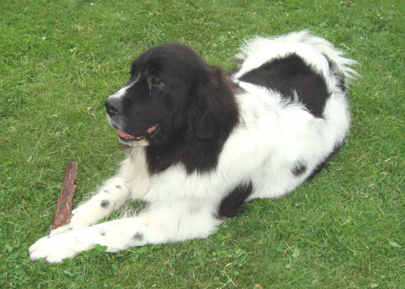 From time to time we have Lorraine Wilson, who runs a mobile pet grooming business called Peticure,  come to the house and groom the Newfs. Today Ellie Mae went first. She has the thicker hair of the two girls and it’s a big job.