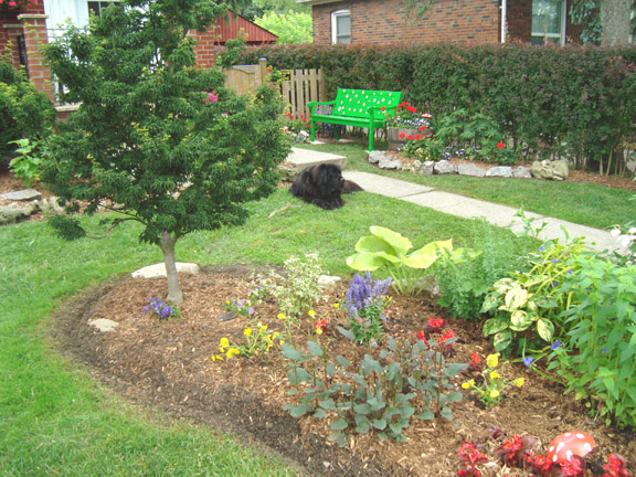 Of course every good garden looks better with a Newfoundland dog loafing around, enjoying a little nap.