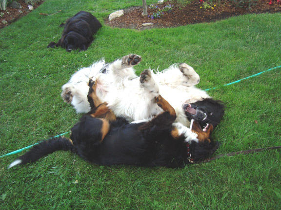 July 1, 2011 comment 0 A visit from Chester Chester came by today to visit with our Newfs. Chester is a Bernese Mountain Dog pup who live up the street. He just turned 7 months old. As you can see, he and Memphis really like playing together. Share this:Share Click to share on X (Opens in new window) X Click to share on Facebook (Opens in new window) Facebook Click to email a link to a friend (Opens in new window) Email Click to print (Opens in new window) Print Like Loading... Related