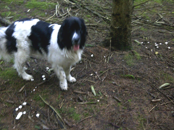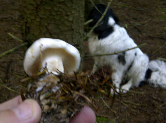 I found a group of mushrooms this morning in a spruce forest that were growing in a large fairy ring. You can see part of the arc of the ring in the lower photo above. I thought perhaps it was a ring of Lepista irina, a tasty edible that fruits in fairy rings in woods. However, the gill attachment isn’t the same as photos of L. irina in my field guide, and also, at the best of times, I have no confidence in my ability to identify this mushroom with certainty. So…whatever that ring of mushrooms is, it’s still there in the woods for the next mushroom hound to figure out. I think in this game it’s good to know your limitations.