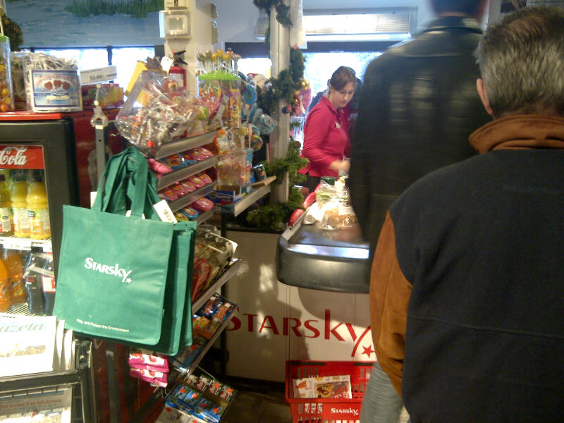 Today, Starsky’s was extra unbelievably crazy. The parking lot was full, the parking lot next door was full and people were parking on the street. Unphased by this, I entered the store, only to be propelled forward into the vegetable area by an unruly throng. Once I completed my shopping I discovered the line-ups to pay went halfway back into the store.