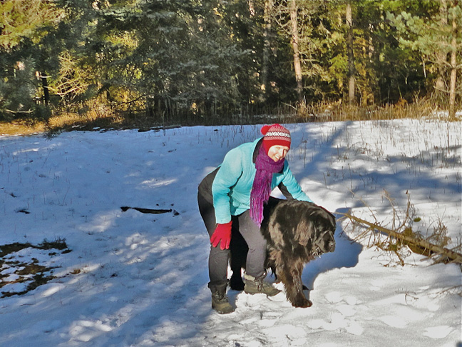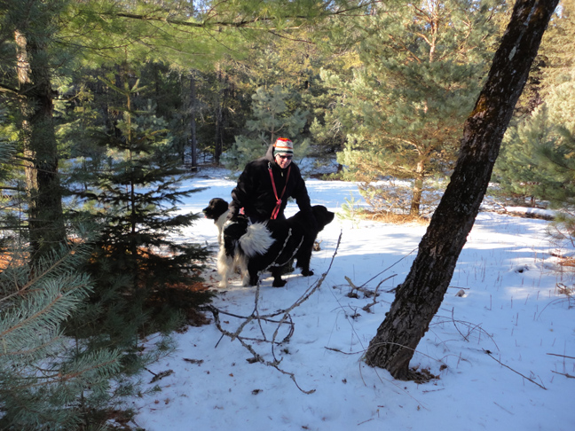 It was such a beautiful afternoon and we decided to take Memphis and Ellie Mae up to a forest for a long walk. We drove up to one of the York Regional Forests, north of Toronto. The main trails were quite icy and slippery for both dogs and people, but we found a side trail that was just right. The dogs enjoyed all kinds of new smells and Memphis had a great time running back and forth between Tuffy P and I.