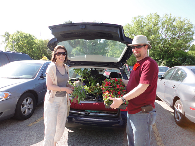 I was teaching this morning, so I missed the Roselands Horticultural Society’s annual plant sale, but Tuffy P and our friend Toni went and brought home all kinds of excellent plants. The photo shows Toni along with another friend, Keith, who was helping out with the sale.