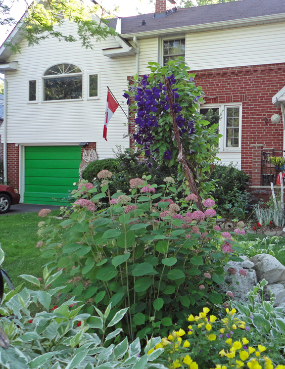 That clematis is a gorgeous colour! I have never seen one grow up anything other than a wall or a fence before. It’s quite striking in the middle of the yard like that.