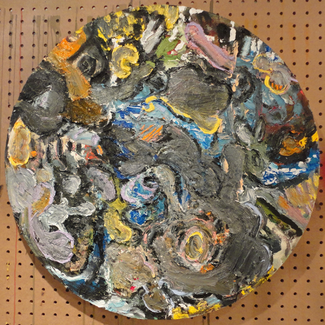 The 2005 paintings were made with acrlyic paint, also on panel. I had 4 panels made at the time and did 3 in the series in 2005. The painting I just completed is on the 4th panel. I exhibited the earlier round ones at NSCAD in Halifax a few years ago. I don’t have any plans to exhibit any of the new paintings.