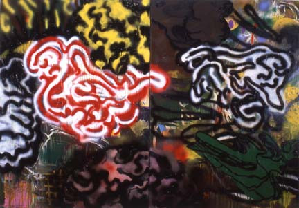 This painting is oil on panel and it is 2 feet in diameter. This is by no means the first time I’ve made a painting called the Source. The first one was in 1998. I exhibited it in an exhibition I co-organized called Canadian Shield. This painting is a large diptych which I still have. It still holds up as far as I’m concerned, although I should say this painting was not well received when I made it.