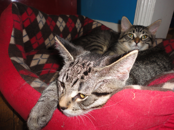 When they do finally power-down, they usually find a cat bed and pile in together.