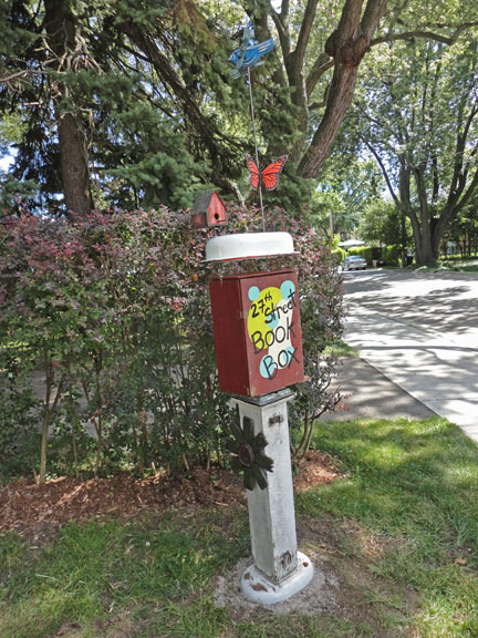 We just installed the 27th St. Book Box. Raw materials are (mostly) from Nice Old Stuff in Jarvis Ontario. The book box is always open. Take a book. Enjoy it. Keep it or return it. Drop off a book anytime. It’s our own lower 27th St. library. We have no idea how it will be received, but we’ll see….