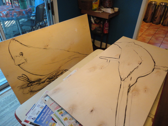 For our next mosaics, we’ve decided to do a pair of cardinals.Ā The first step is to draw them out….