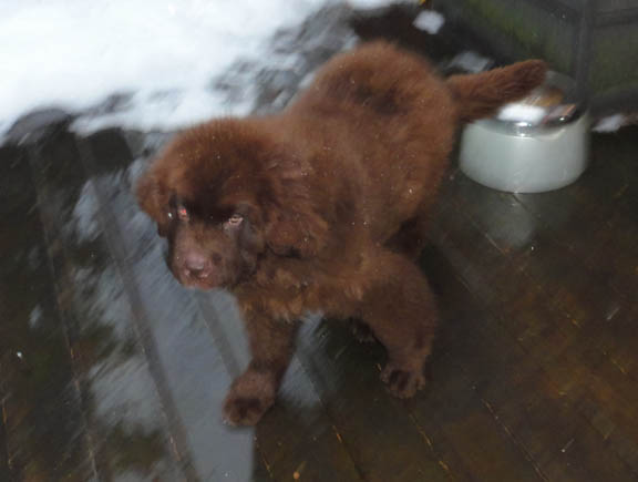He’s so tiny and adorable! Hopefully the rest of the furry family are accepting him. I don’t think I’ve ever seen a Newfie that was brown before. Gorgeous George.