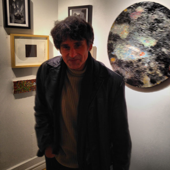 Here’s Behzad with one of my paintings in the show, called The Source.