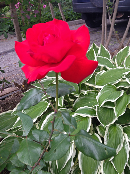 We are not big rose growers. We don’t know much about them and I confess we are inattentive to their specific needs. However, one rose bush came with the house. Tuffy P cut it right back this year, and it has responded with a small number of very beautiful blooms.