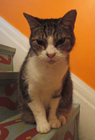Meet Milo. This lad was in need of a home so we’ve created a vacancy. Our house is a big change for Milo but he’s doing well. He’s getting along just fine with the other cats – but so far he’s keeping his distance from George and Memphis. They must seem like giants to him. Milo is an affectionate boy with a very steady personality. He’ll need a little time to cope with the dogs, but I think he’s going to fit into the menagerie very well.