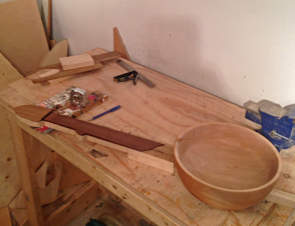 For the second photo I’ve laid out the pieces pre-shaping but you can imagine from the layout how the banjo will look when completed. The heel will go through the bowl and out the other side…for the photo I simply laid the bowl on top of the heel piece. Lots of work ahead shaping the neck.