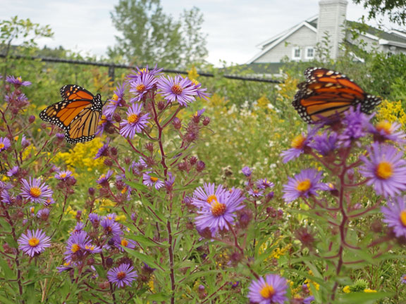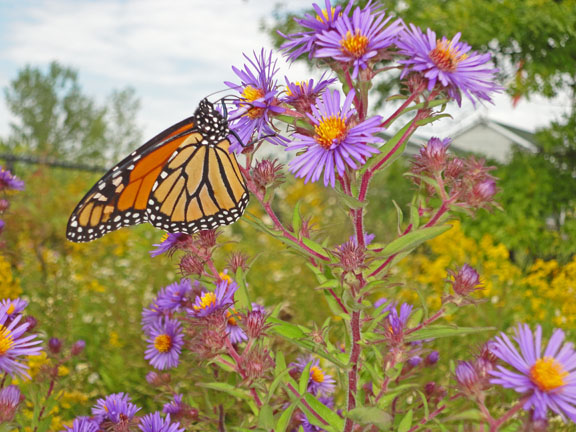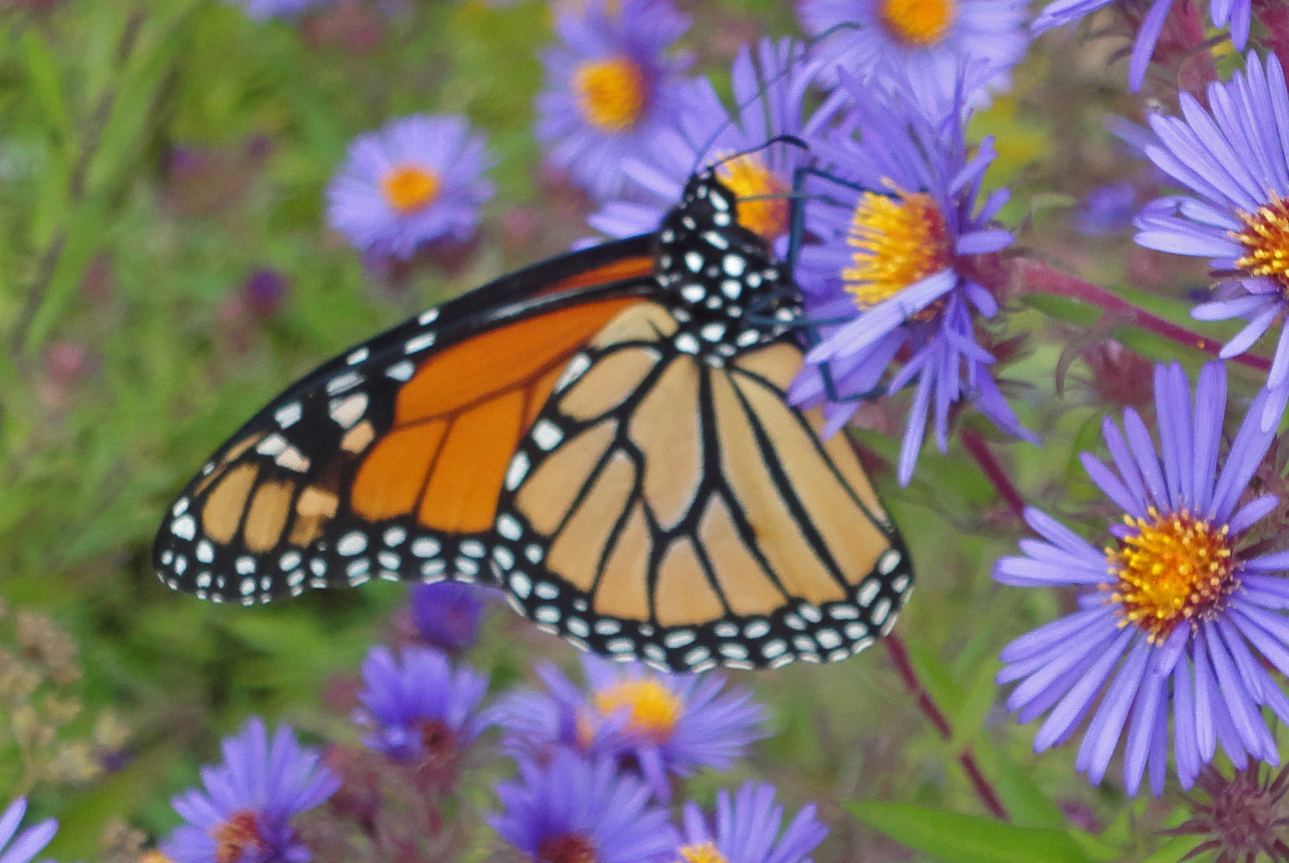 Visitors to Sam Smith Park here in Toronto are being treated to a great show of monarch butterflies right now. We took a walk with the dogs a short while ago and saw butterflies anywere there were flowers.