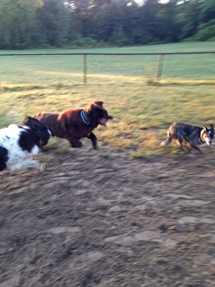 Yesterday we took the Newfs to the local dog park in Sam Smith Park to see how he would do with other dogs now. He interacted very well with all the dogs there, so we’ve reinstated his dog-park privileges.