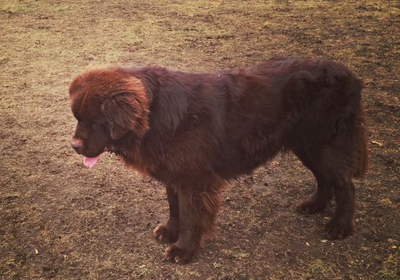 George is a lovely dog, still full of puppy playfulness, even at 16 months and 140 pounds. He’s not done growing yet, but his growth has slowed right down. People think of Newfs as slow and lazy, and it is true they do get that way (ask Memphis!), but a young male Newf is a handful. Everything is a toy and everyone is a playmate. In the evening he’s usually in play mode until about 9 pm, then he conks out, usually close to one or the other of us.