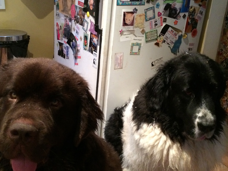 The dogs are always in the way in the kitchen. We send them out, and slowly they sneak closer and closer until they’re back in, enjoying the smells and the activity.