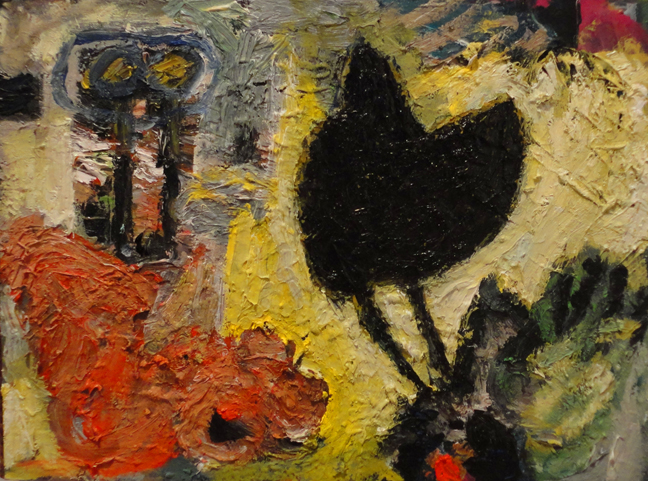 Throughout, I worked on several paintings at once in my little basement studio. At different times I removed some and added others to the mix allowing the ideas in various paintings to inform one another in all kinds of ways. All these works were painted in sessions several days to a week apart. As usual, they’re all improvisational. I don’t make any drawings or plans for these things – drawing is painting is thinking.