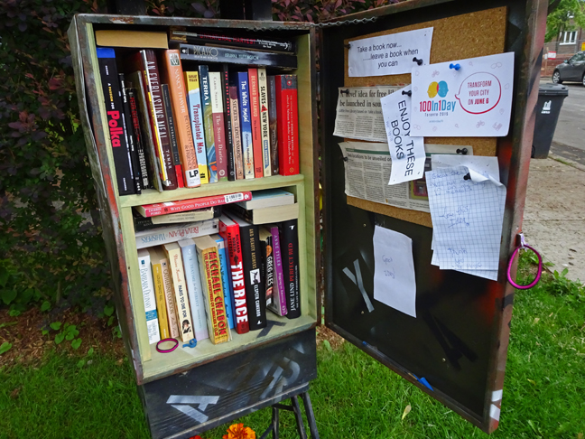 Our Twenty Seventh Street Book Box has kept a pretty good equilibrium from the start. It is usually almost full or full and there is a steady turnover of books. I heard the other day that the book boxes up by Humber College could use a few fresh books. If you have some you were going to drop at Twenty Seventh, I suggest this is a good time to fill up those other boxes first.