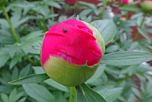 I was sure our peonies were going to burst a few days ago, and this one can barely contain itself, but not one has opened yet.