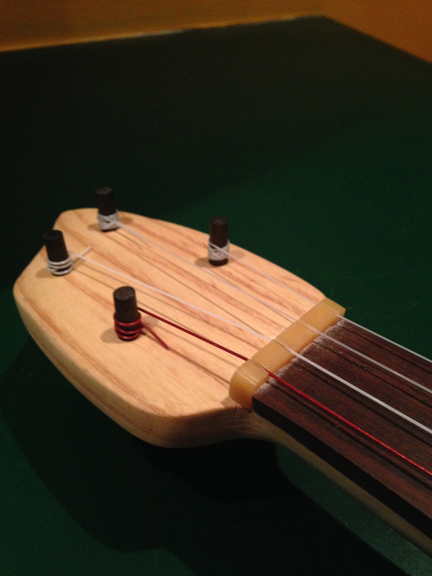 The pegs are your basic violin pegs. I drilled and reamed the holes, then shaped the pegs to fit.