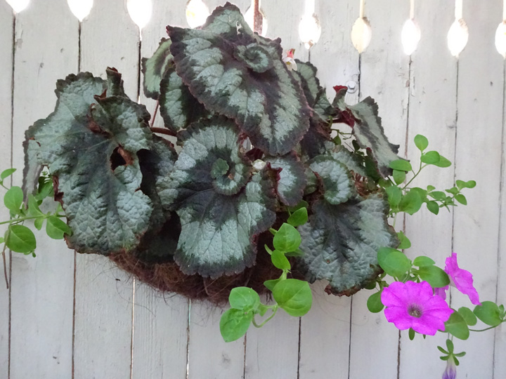 Side fence planter featuring a Rex Begonia Escargot 755 West Delavan