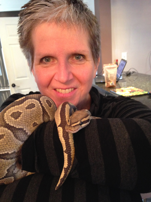 Tuffy P was very relaxed with this critter curling around her arms. I’ve got nothing against snakes, so long as they are wrapping themselves around somebody else, so I declined the opportunity.
