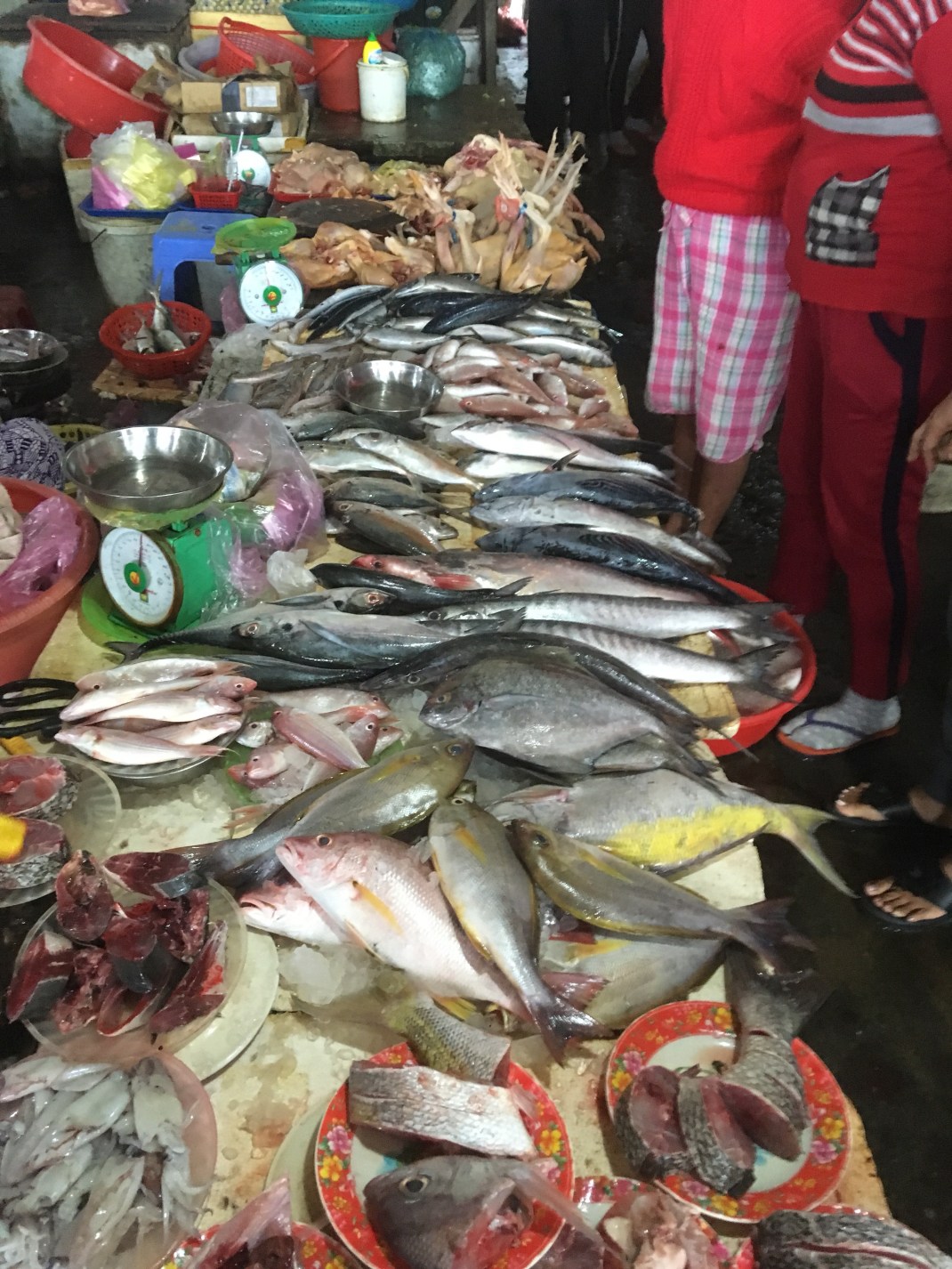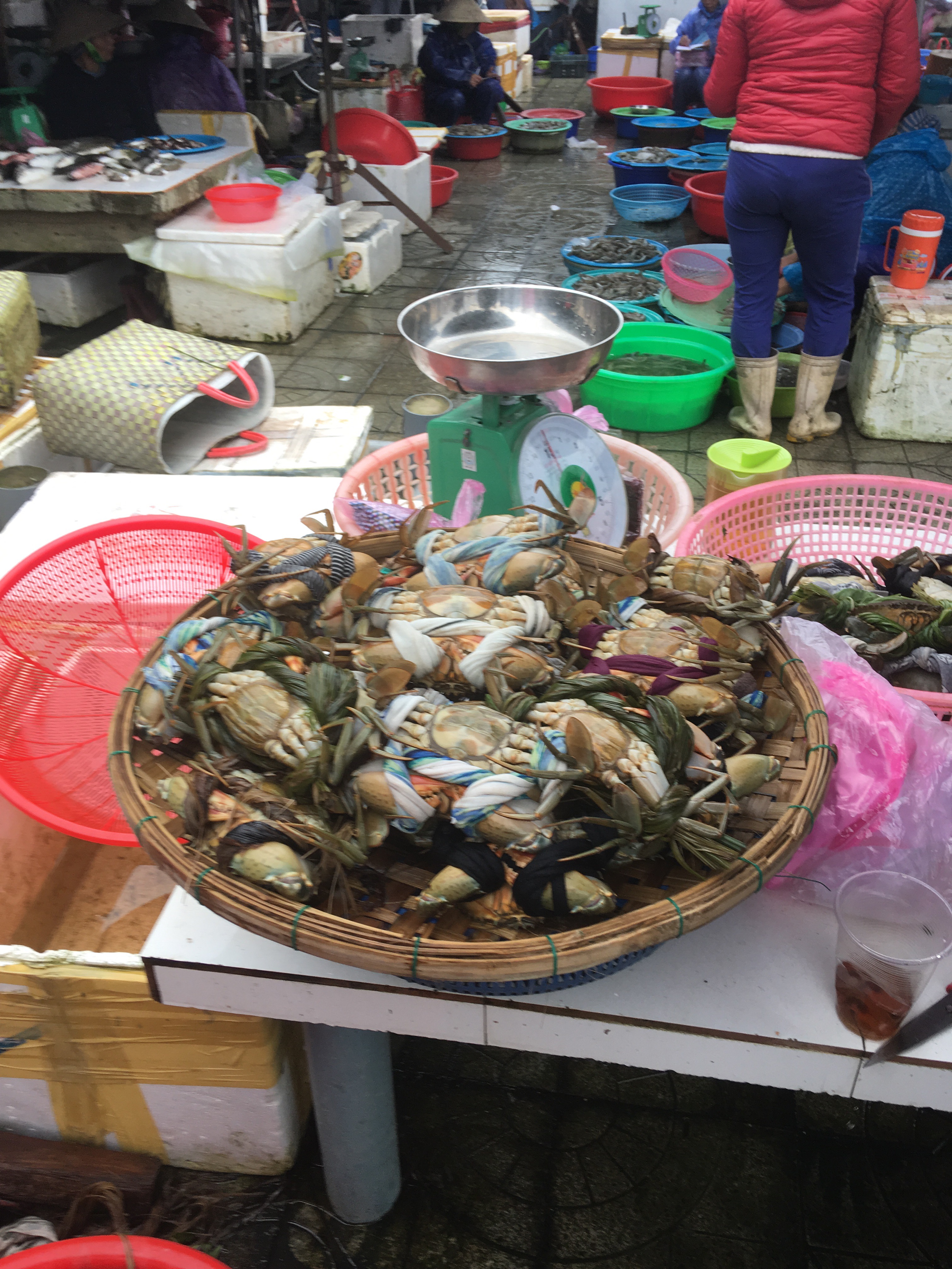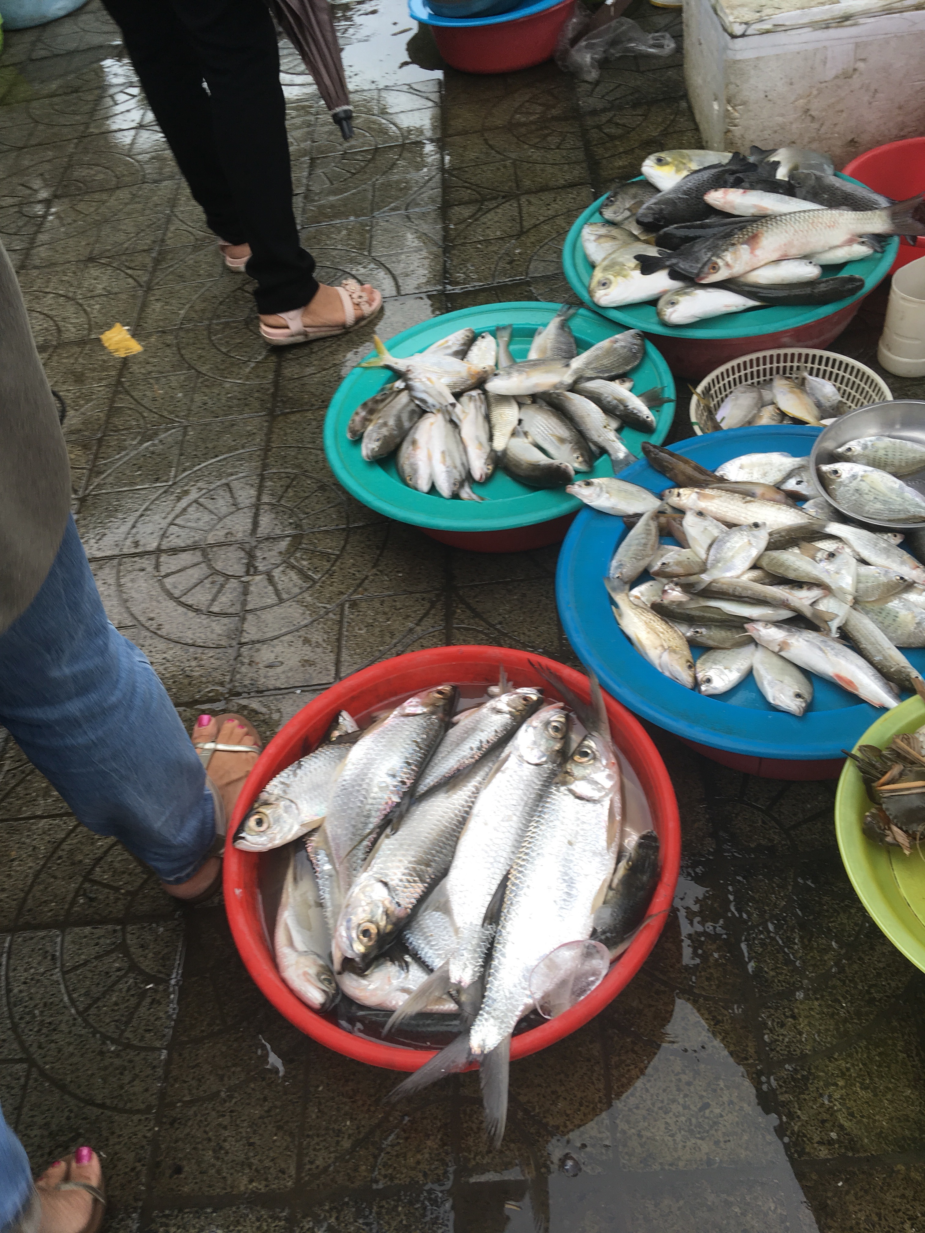 We started with a trip to the Hoi An market where we toured rhrough the market and learned about all the fish, meats, produce and herbs available there.