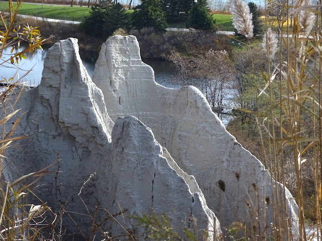 Ancient clay Lake Ontario shoreline, cliffs, bluffs, weird eroded formations. Below, Bluffer’s Park, a big beach, the duck pond and other ponds created for runoff filtration.