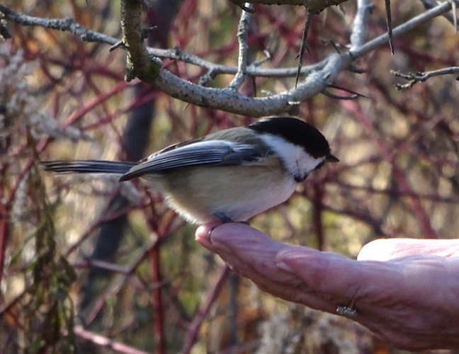 Today’s nature walk with Miles Hearn was at Ashbridges Bay. This is a very popular summer spot, with a really nice beach and many beach vollyball courts. There weren’t so many people around today. Temperature hovered around the freezing point this morning but in exposed areas, the wind was biting. This was a good day to have mitts over gloves. Miles equips himself with hand-warmers, which keep his mitts toasty for hours.
