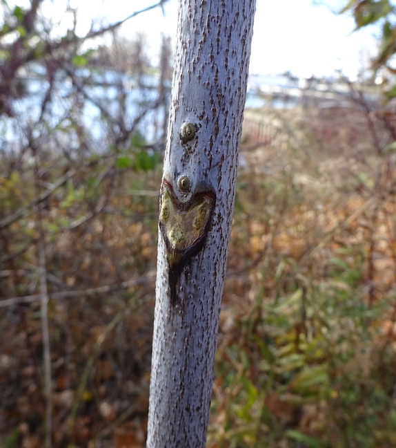 Once the leaves fall, nature offers us a different look at some shrubs and trees. For instance, Miles pointed out the leaf scars on some Kentucky Coffee Trees.
