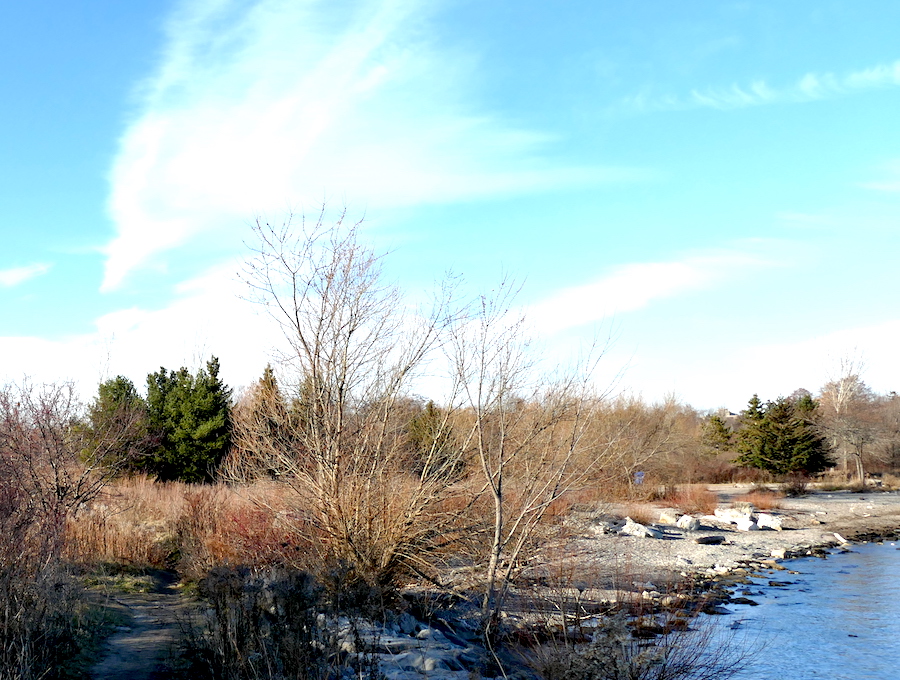 A friend’s mom passed the other day and so this morning we zoomed up to Markham for the funeral service and burial. At the cemetery, although there was little wind, the cold was biting. By the time we returned home to Long Branch, though, it seemed the temperature had crept up a few degrees. It was clear and it was sunny.