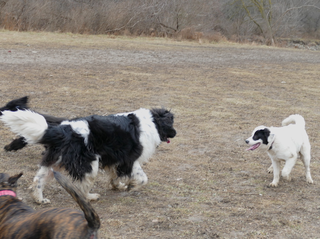 The Partners piled into the car (they love car rides) and we trundled off to one of their fave places, the Etobicoke Valley leash free park. This is located west of The West Mall and South of Dundas at the end of a street called Southcreek.