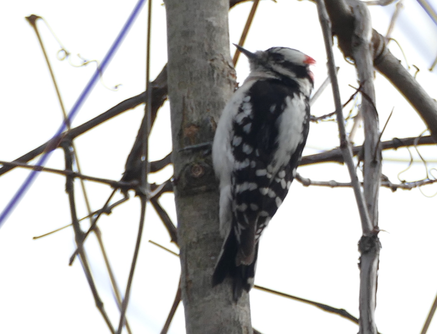 I saw one blue jay. It was difficult for me to get a good photo of him sillhouetted against the grey sky.