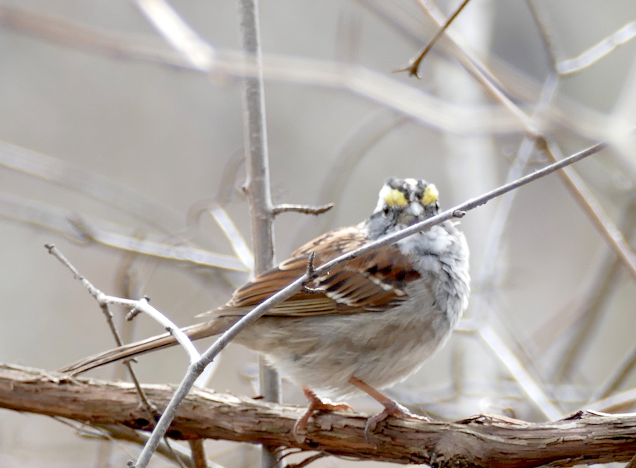 There were the usual house sparrows around but I also saw this lovely sparrow with the yellow bits on his head. I believe it is a white-throated sparrow.