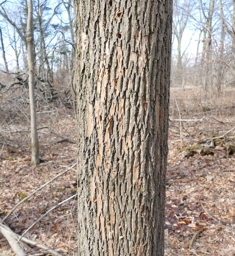 There are quite a few butternut in Marie Curtis Park. The bark looks like it’s been taped up with masking tape.