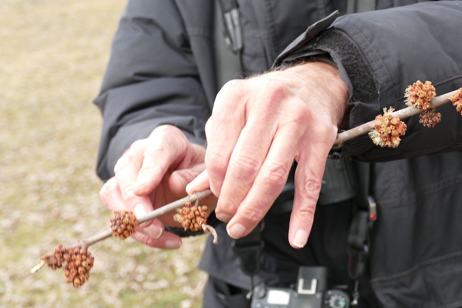 Above, Miles is showing us silver maple buds.
